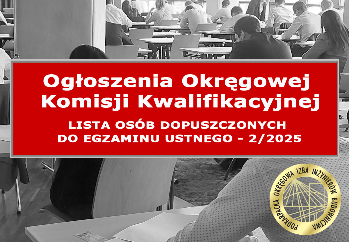 | Ogłoszenia Okręgowej Komisji Kwalifikacyjnej - lista osób dopuszczonych do egzaminu ustnego - sesja 2/2025 |