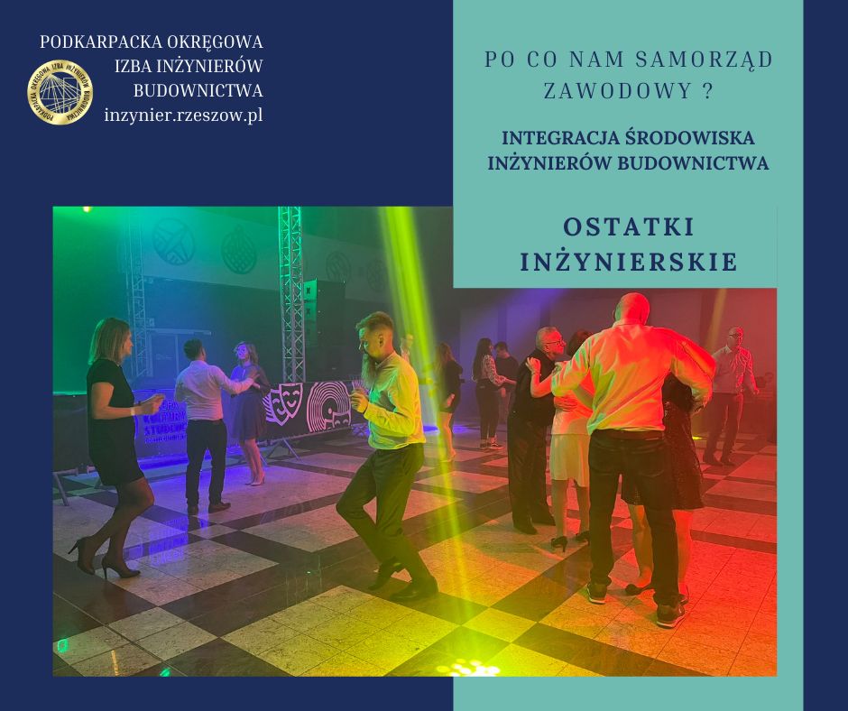 Ostatki Inżynierskie. Ostatki Inżynierskie jest to mniej formalna integracja środowiska odbywająca się na zakończenie karnawału. Jest to wydarzenie, które łączy elementy integracji, zabawy i tradycji. Impreza odbywa się w jednym z obiektów należących do kompleksu budynków Politechniki Rzeszowskiej, co dodatkowo łączy się z młodością i czasami studenckimi inżynierów. Ostatki Inżynierskie to wydarzenie, które warto przeżyć. |