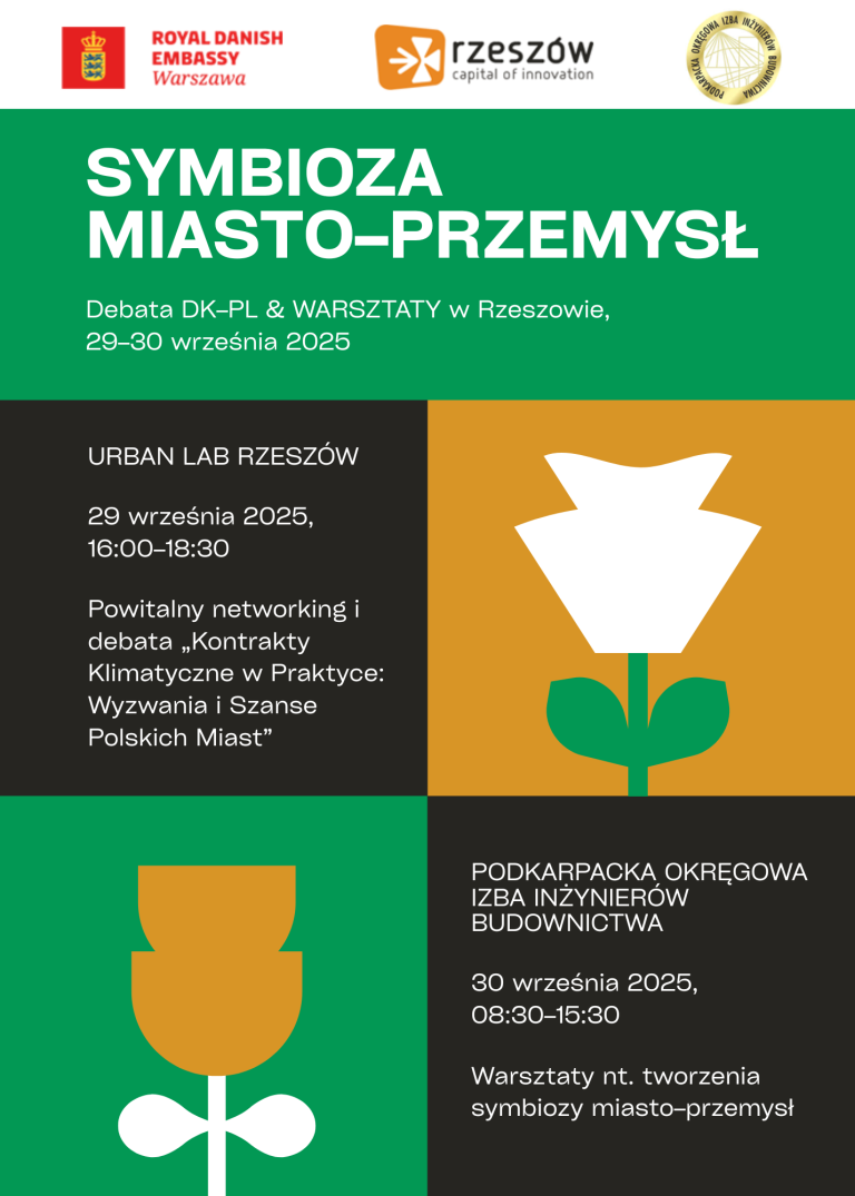 W dniu 30 września 2025 r. Urząd Miasta Rzeszowa wraz z Ambasadą Królestwa Danii w ramach współpracy podjęło inicjatywę przeprowadzenia warsztatów: Symbioza Miasto – Przemysł w Rzeszowie – Debata Duńsko – Polska & Warsztaty w siedzibie Podkarpackiej OIIB.