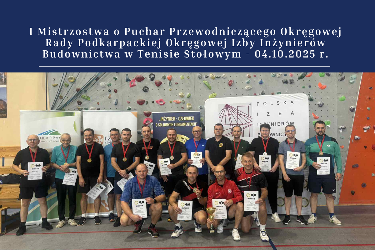 W dniu 4 października 2025 r. odbyły się I Mistrzostwa o Puchar Przewodniczącego Okręgowej Rady Podkarpackiej Okręgowej Izby Inżynierów Budownictwa w Tenisie Stołowym, które otworzył zastępca przewodniczącego OR PDK OIIB Wacław Kamiński.