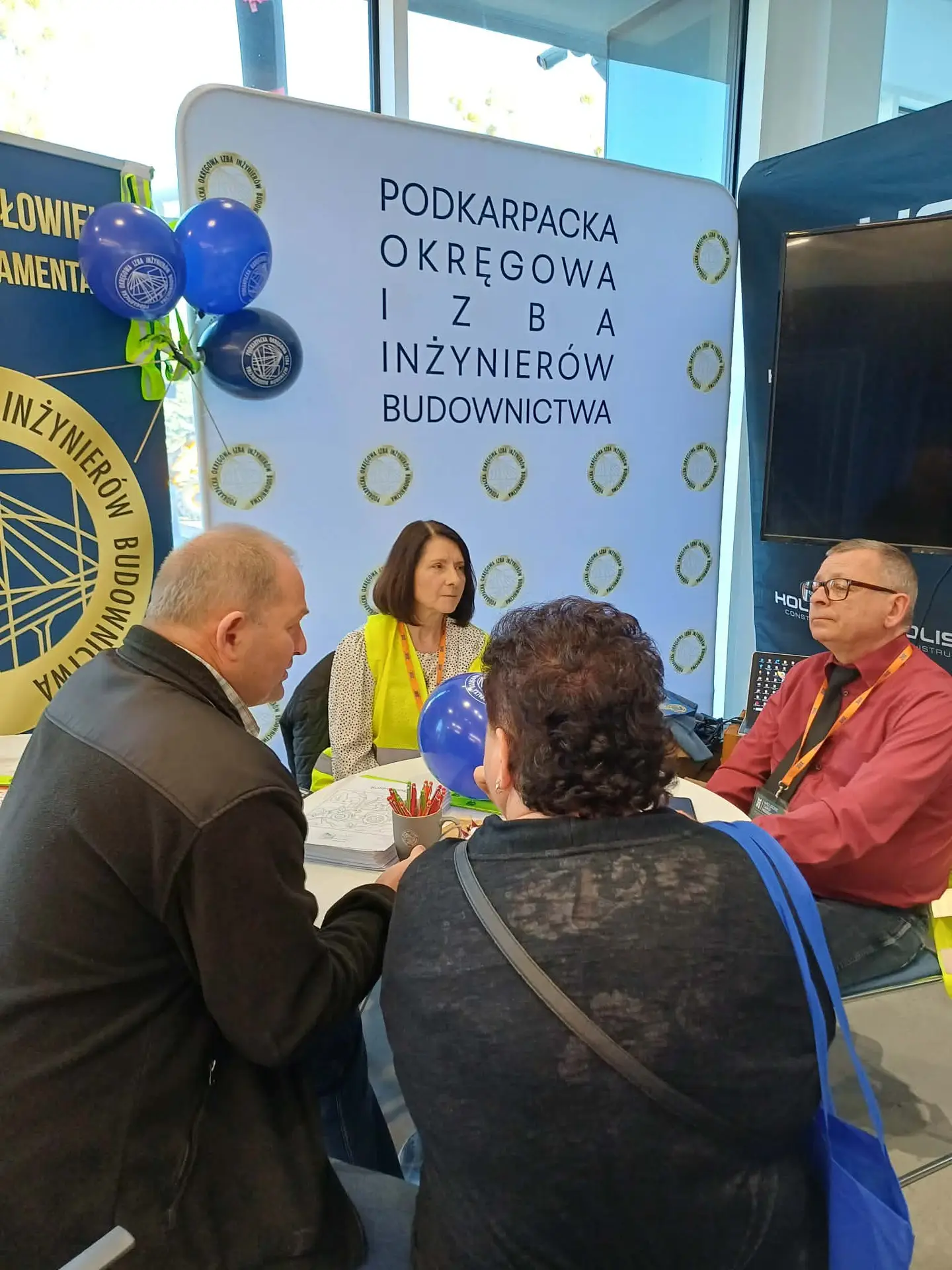 W gronie partnerów wydarzenia znalazła się Podkarpacka Okręgowa Izba Inżynierów Budownictwa, która była obecna ze swoim stoiskiem informacyjnym. Odwiedzający mogli skorzystać z porad udzielanych przez przedstawicieli Izby: sekretarza OR PDK OIIB Lilianę Serafin, zastępcę przewodniczącej Komisji Doskonalenia Zawodowego PDK OIIB Agnieszkę Kaczkowską, członka naszego samorządu Zbigniewa Kaczkowskiego oraz przewodniczącego Zespołu Prawno-Regulaminowego PDK OIIB Sławomira Matusika, który podczas targów wystąpił także jako prelegent, prezentując materiały zawierające kluczowe informacje niezbędne w procesie budowlanym.