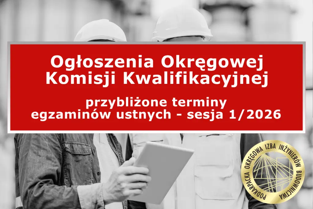 Ogłoszenia Okręgowej Komisji Kwalifikacyjnej – sesja 1/2026 – przybliżone terminy egzaminów ustnych.