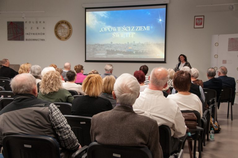 Podczas prelekcji mogliśmy poznać nie tylko najważniejsze miejsca biblijne, ale również te mniej znane zakątki, które skrywają fascynujące historie. Podczas spotkania obejrzeliśmy również poruszający film pt. „Niesiemy nadzieję – Dom Pokoju w Betlejem”, który przybliżył nam misję sióstr elżbietanek niosących wsparcie dzieciom w trudnej sytuacji życiowej. Film ukazał nie tylko wyzwania codziennego życia w Ziemi Świętej, ale również piękno ludzkiej solidarności i nadziei, którą można odnaleźć nawet w najtrudniejszych warunkach.