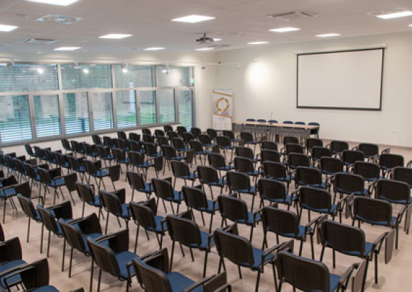 Przestronne wnętrze o powierzchni 170 m², mogące pomieścić 150 osób. To idealne miejsce na większe wydarzenia, seminaria czy konferencje. Wyposażona w nowoczesny sprzęt audiowizualny oraz zapewniająca komfortowe warunki dla uczestników.