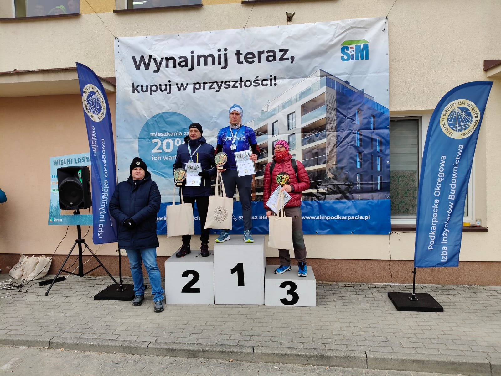 W dniu 31 stycznia 2026 r. w Woli Zgłobieńskiej odbyły się III Otwarte Mistrzostwa Inżynierów Budownictwa w Biegach Terenowych w ramach zimowej edycji imprezy sportowej „Wielki Las", która zgromadziła licznych miłośników aktywności na świeżym powietrzu. Uczestników zawodów przywitał zastępca przewodniczącego OR PDK OIIB Wacław Kamiński, który podkreślił znaczenie integracji środowiska inżynierskiego poprzez sport i wspólne inicjatywy. Zawody rozegrano w wyjątkowo wymagających warunkach atmosferycznych przy temperaturach -8°C do -12°C (przy odczuwalnej temperaturze sięgającej -18°C) co stanowiło prawdziwe wyzwanie. Uczestników przez cały czas trwania zawodów wspierał zastępca przewodniczącego wraz z członkami Zespołu ds. Promocji i Integracji PDK OIIB Sławomirem Turopolskim oraz Marcinem Kurzeją. W ramach wydarzenia Podkarpacka Okręgowa Izba Inżynierów Budownictwa miała swoją odrębną kategorię, z podziałem na kobiety i mężczyzn, w następujących konkurencjach: - bieg na 12 km, - bieg na 22 km, - nordic walking na dystansie 10 km. W poszczególnych konkurencjach miejsca zajęli: Bieg 12 km - kobiety: I miejsce - Katarzyna Kamińska II miejsce - Klaudia Ochab Bieg 12 km - mężczyźni: I miejsce - Ryszard Kempa II miejsce - Piotr Wolański III miejsce - Mateusz Woźnica Bieg 22 km - mężczyźni: I miejsce - Szymon Kudła II miejsce - Piotr Bednarski III miejsce - Tomasz Juda Nordic walking 10 km - kobiety: I miejsce - Małgorzata Darecka II miejsce - Anna Zając III miejsce - Bożena Babiarz Nordic walking 10 km - mężczyźni: I miejsce - Mateusz Sobek II miejsce - Michał Darecki III miejsce - Zbigniew Młynarski Pomimo siarczystego mrozu atmosfera wydarzenia była niezwykle serdeczna i pełna sportowego ducha. Zawodnicy wykazali się nie tylko doskonałym przygotowaniem fizycznym, ale również determinacją i wzajemnym wsparciem. Cała impreza została profesjonalnie zorganizowana, z dbałością o bezpieczeństwo uczestników, sprawną obsługę tras oraz zaplecze logistyczne. Zimowa edycja „Wielkiego Lasu" po raz kolejny udowodniła, że nawet trudne warunki pogodowe nie są przeszkodą dla pasji, aktywności i dobrej energii, która towarzyszy takim wydarzeniom. Galeria fotograficzna z III Otwartych Mistrzostw Inżynierów Budownictwa w Biegach Terenowych - 31.01.2026 r. >>