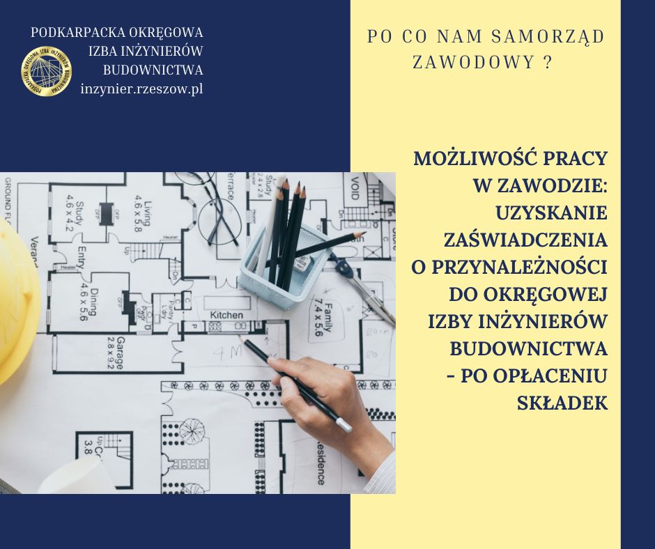 Uzyskanie zaświadczenia o przynależności do izby po opłaceniu składek jest istotnym krokiem w procesie legalizacji pracy w zawodzie inżyniera budownictwa. Aby uzyskać zaświadczenie członek musi posiadać nadane mu uprawnienia budowlane, złożyć wniosek i opłacić składki członkowskie. Uzyskane zaświadczenie potwierdza opłacenie składek i obowiązkowego OC, tym samym umożliwia sprawowanie samodzielnych funkcji technicznych w budownictwie. |