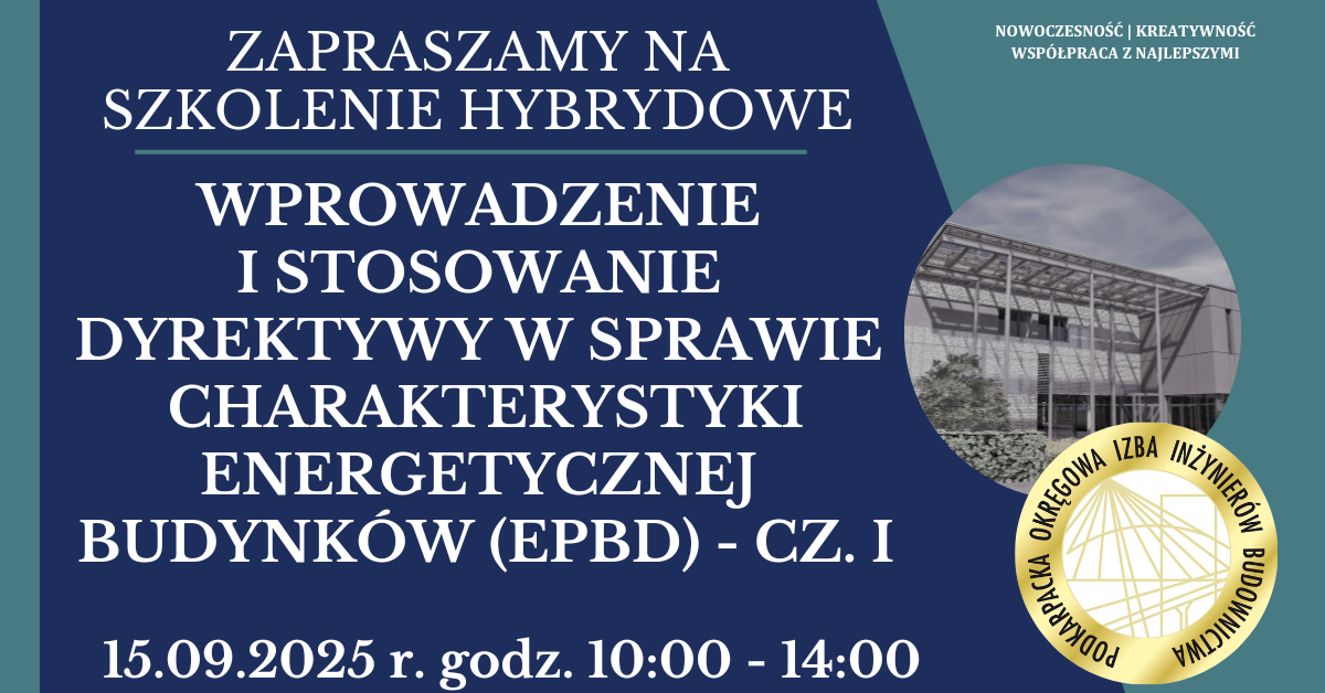 | Szkolenie hybrydowe PDK OIIB - Wprowadzenie i stosowanie dyrektywy w sprawie charakterystyki energetycznej budynków (EPBD) - cz. I - 15.09.2025 r. |