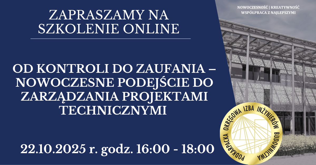 | Szkolenie on-line PDK OIIB - Od kontroli do zaufania – nowoczesne podejście do zarządzania projektami technicznymi - 22.10.2025 r. |