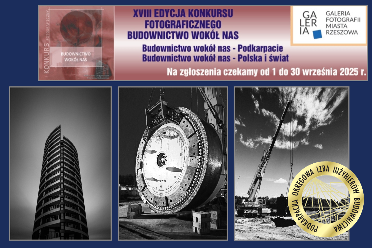Co można fotografować ? Nowoczesne i historyczne obiekty, procesy budowlane, detale konstrukcyjne i materiały budowlane! XVIII edycja konkursu fotograficznego „Budownictwo wokół nas" - wyślij swoje fotografie i zgłoszenia w terminie od 1 do 30 września 2025 r. ma adres e-mailowy: organizacja@inzynier.rzeszow.pl. Pokażcie nam, jak widzicie budownictwo w codzienności i wygrajcie nagrody! ...więcej>> |