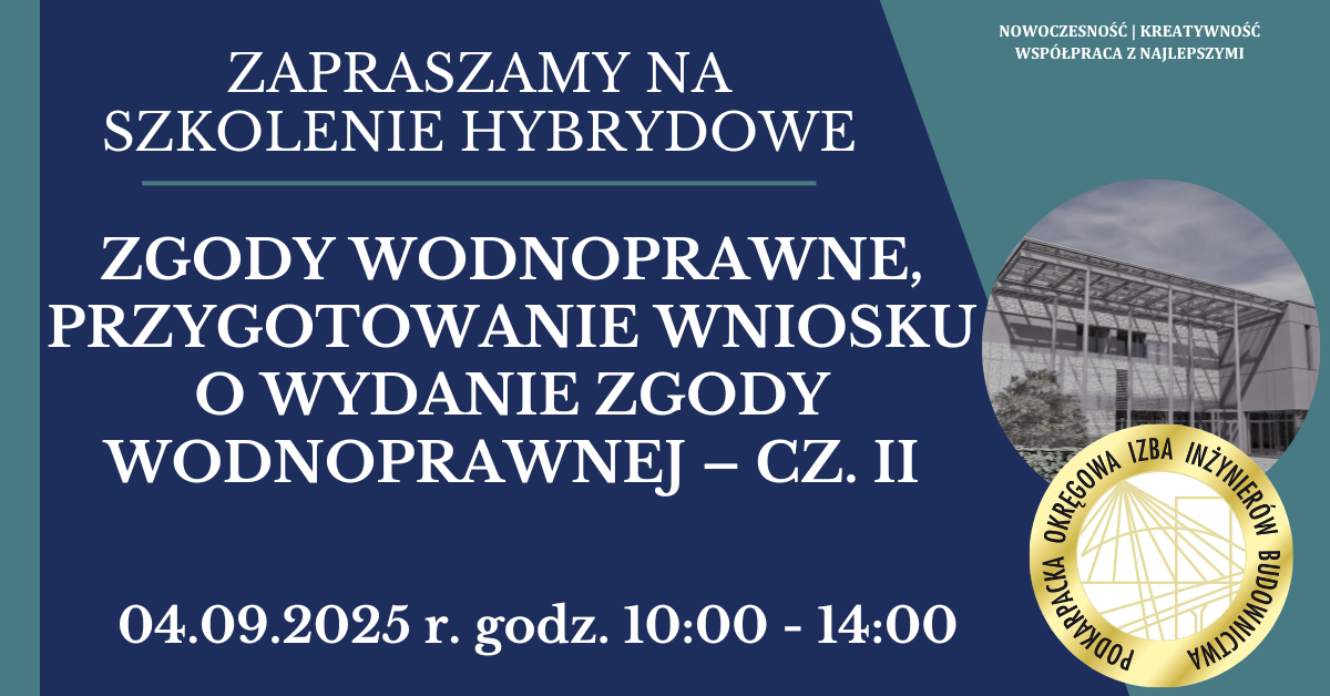 | Szkolenie hybrydowe PDK OIIB - Zgody wodnoprawne, przygotowanie wniosku o wydanie zgody wodnoprawnej - cz. II - 04.09.2025 r. |