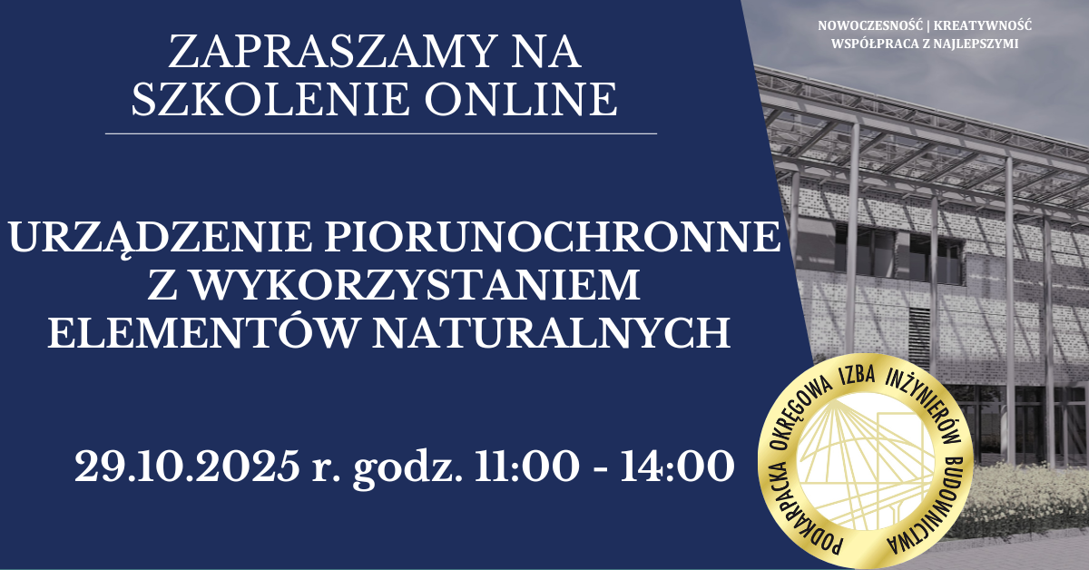 | Szkolenie on-line PDK OIIB - Urządzenie piorunochronne z wykorzystaniem elementów naturalnych - 29.10.2025 r. |