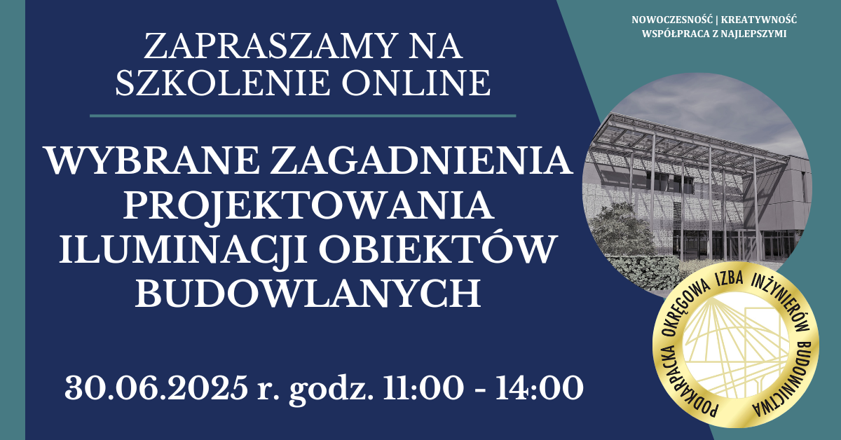 | Szkolenie on-line PDK OIIB - Wybrane zagadnienia projektowania iluminacji obiektów budowlanych - 30.06.2025 r. |