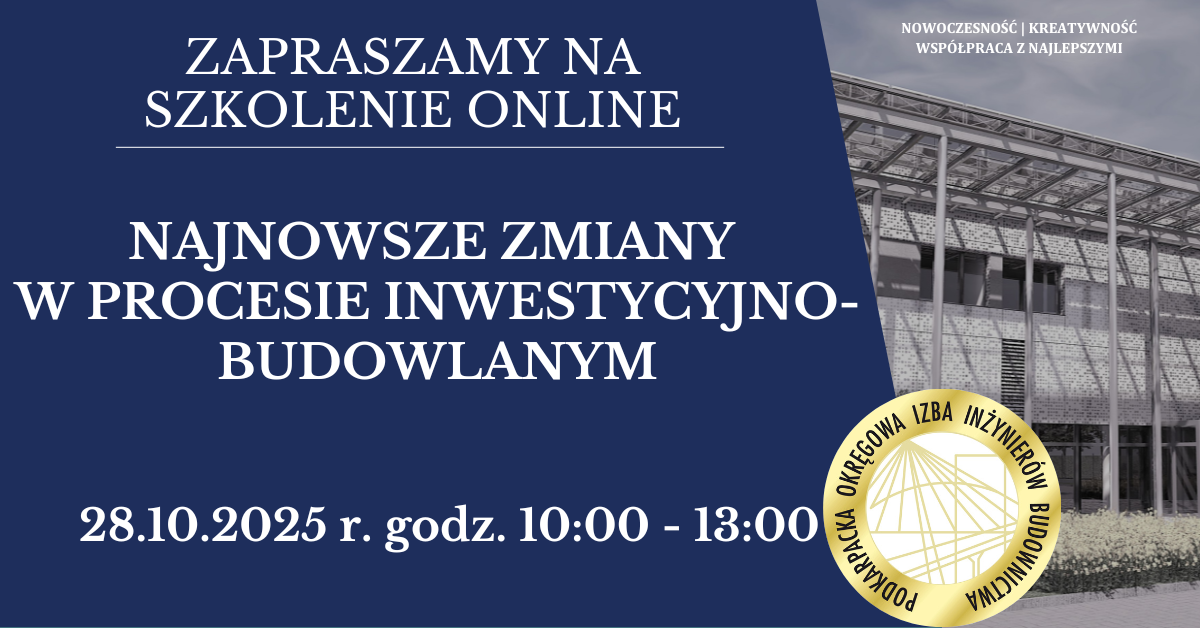 Szkolenie on-line PDK OIIB - Najnowsze zmiany w procesie inwestycyjno-budowlanym - 28.10.2025 r. |
