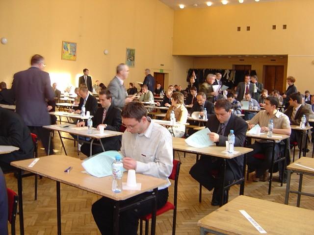 Moment rozdawania testów zdającym przez członków Zespołów Egzaminacyjnych