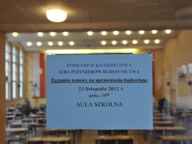 Rzeszów, 23.11.2012 r. - egzamin testowy w auli Zespołu Szkół Mechanicznych w Rzeszowie, ul. Hetmańska 45 a