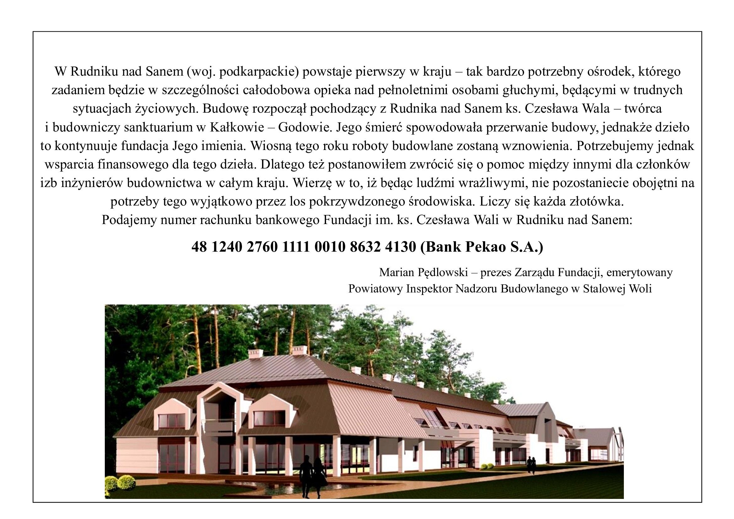 Podkarpacka Okręgowa Izba Inżynierów Budownictwa zaprasza wszystkich czynnych członków wraz z osobami towarzyszącymi na wyjazd sanatoryjny do CRR KRUS „KRESOWIAK" w Horyńcu-Zdroju. ...więcej>> |