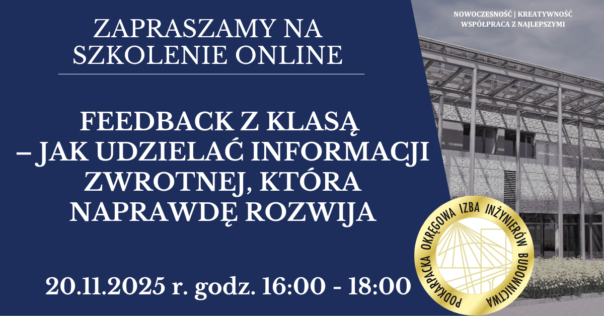 | Szkolenie on-line PDK OIIB - Feedback z klasą - jak udzielać informacji zwrotnej, która naprawdę rozwija - 20.11.2025 r. |