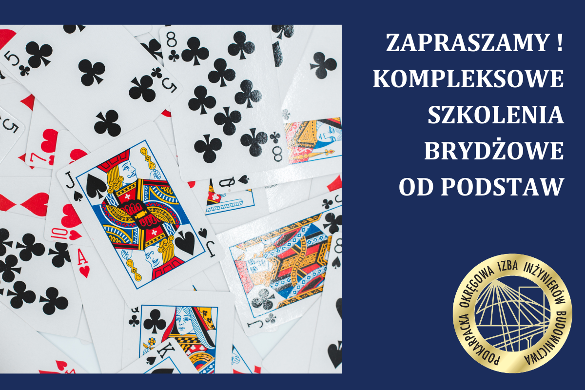 Zapraszamy członków Podkarpackiej Okręgowej Izby Inżynierów Budownictwa na kompleksowe szkolenia brydżowe od podstaw prowadzone przez doświadczonego instruktora! Brydż sportowy to nie tylko gra karciana - to dyscyplina umysłowa rozwijająca logiczne myślenie, koncentrację i umiejętność współpracy. Szkolenia odbywać się będą w siedzibie ... więcej »