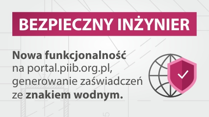 W ramach akcji Bezpieczny Inżynier, w portalu PIIB dostępna jest nowa funkcjonalność, która umożliwia samodzielne pobieranie i drukowanie zaświadczeń inżynierskich z dodatkowym zabezpieczeniem. Nowy system generuje dokumenty ze znakiem wodnym PIIB, co potwierdza ich autentyczność i zwiększa bezpieczeństwo obiegu. ...więcej>> |